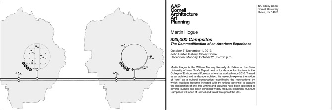 Cornell University, College of Art, Architecture and Planning, John Hartell Gallery, Sibley Dome 925,000 Campsites: The Commodification of an American Experience