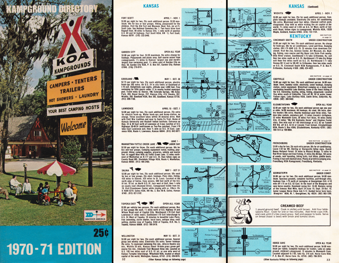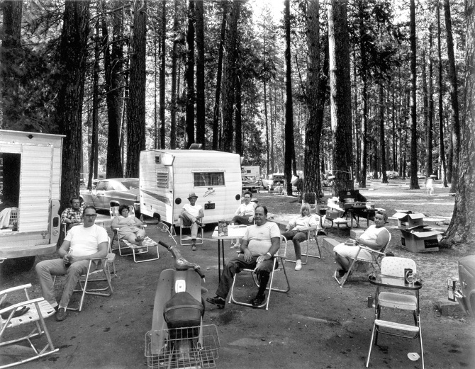 As the social conventions surrounding the campfire die away, campers increasingly turn to campground operators for knowledge of the road ahead. Like the hotel chains it emulates, Kampground of America (KOA) is among the first to take advantage of this new demand with a toll-free advance reservation phone number, mass mailings of its campground directory, and the option to use one’s credit card to hold a space in advance of arrival. By the 1980s third-party entities like ReserveAmerica seek to appropriate this virtual-access model by matching campers to campgrounds through a sophisticated phone reservation system and later a web-based service. Online information duplicates and enhances knowledge once available only on the ground, at the site: campground maps, detailed specs, and photographs of individual campsites are available for thousands of private and public facilities, often from the same website. To ensure fair access, some national park campgrounds now accept online reservations up to six months in advance. For the avid practitioner, camping has thus become a year-round activity, alternating in two seasons between the real and the virtual, on the ground and in the imagination.