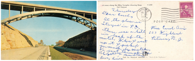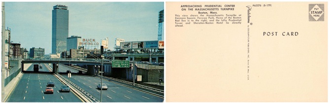 Featured here is a sampling of the collection of Interstate 90 postcards I accumulated on ebay as part of my preparations for the I-90 studio I led during the Spring 2019 semester at Cornell. These postcards are loosely arranged in geographical order to form an uninterrupted, 3,020 mile road span that physically and metaphorically links Boston and Seattle via Springfield, MA, Albany, NY, Cleveland, OH, Chicago, IL, Madison, WI, Sioux Falls, SD, and Spokane, WA.running East to West. The postcards are presented in geographical order, running East to West.