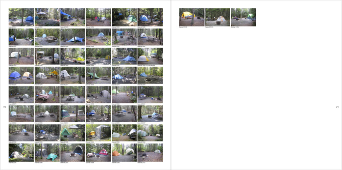 Following the advice of land artists like Robert Smithson and Michael Heizer, for whom "the work is not put in a place, it is that place," Hogue employs methodologies of design research to reconceive the site not as a point of departure, but rather as a constructive end product within architecture and landscape architecture. In Materiality Displaced, Organized, Flattened: Recording the Landscape (2018), for example, he discusses fieldwork techniques available to students and designers for collecting information on site visits; in [Fake] Fake Estates (2006), he proposes a new take on Gordon Matta-Clark’s seminal 1975 Fake Estates project, in which the artist purchased and later documented 14 residual land parcels at auction in Queens for $25 each (a 2.33’ x 355’ long strip of land, a 1.83’ x 1.11’ lot, among others). Most recently, he has taken an interest in camping culture in the United States, interrogating the discrepancies that exist between the deeply cherished American ideal of ruggedness and independence and the desire for an increasingly sophisticated range of utilities and conveniences. For Hogue, campgrounds indeed commodify into multiple sites — literally tens of thousands of them across the United States — the locus of this unique experience, each functioning as a stage upon which cultural fantasies can be performed in full view of an audience of nearby campers. Each in their own way, these projects foreground an obsessive degree of bureaucratic scrutiny that is directly responsible for the emergence of "sites" as discrete units within these respective systems.